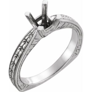 14K White Gold 6.5 mm Round Engagement Ring Mounting