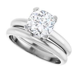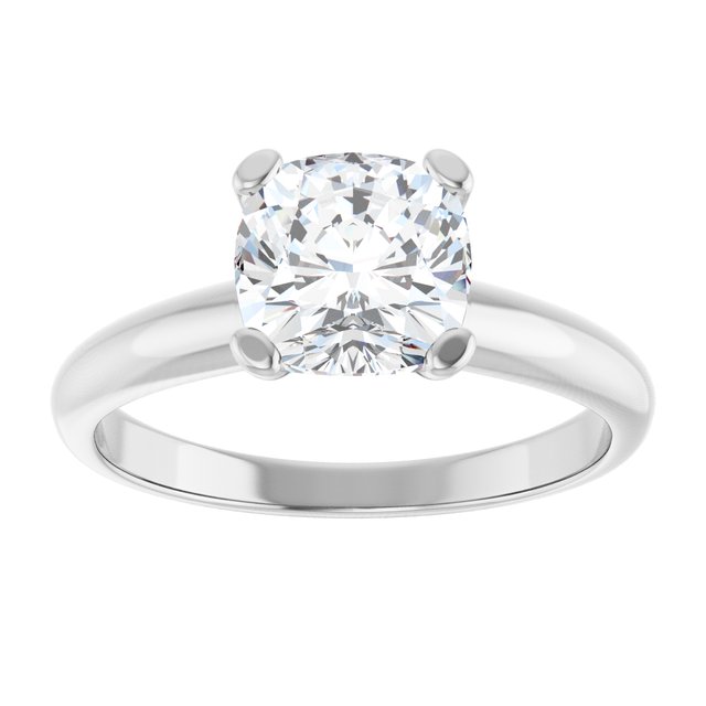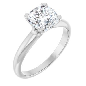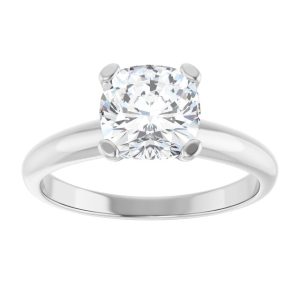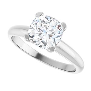 14K White Gold 7×7 mm Cushion Solitaire Engagement Ring Mounting