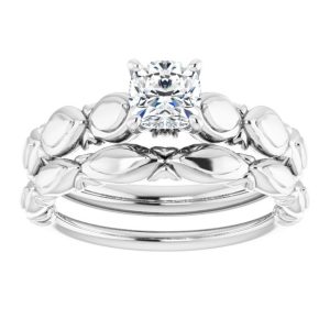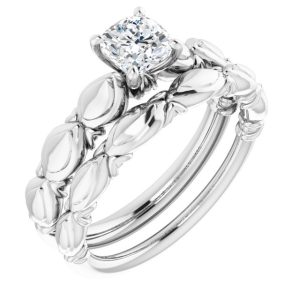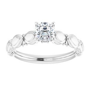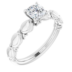 14K White Gold 5×5 mm Cushion Sculptural-Inspired Engagement Ring Mounting