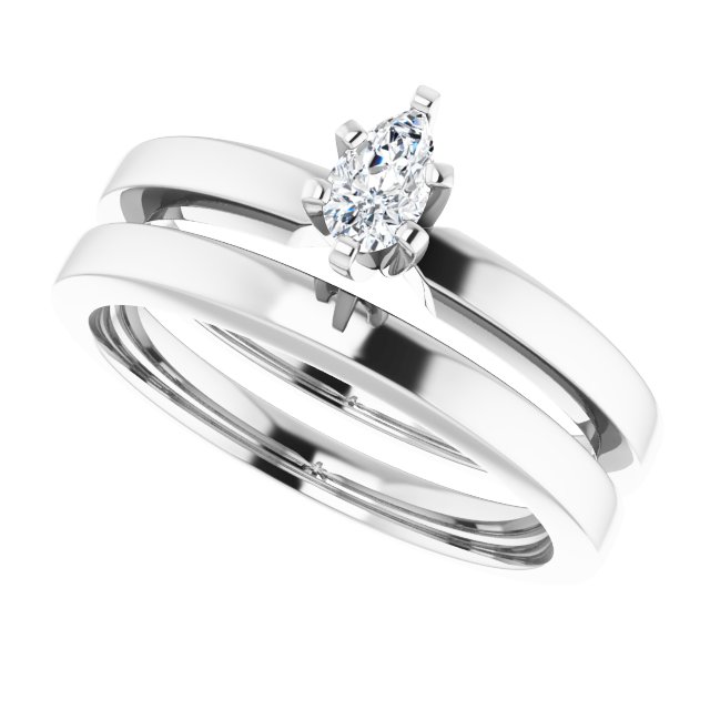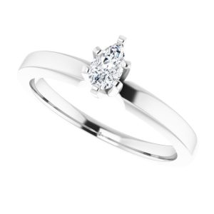 14K White Gold 5×3 mm Pear Solitaire Engagement Ring Mounting