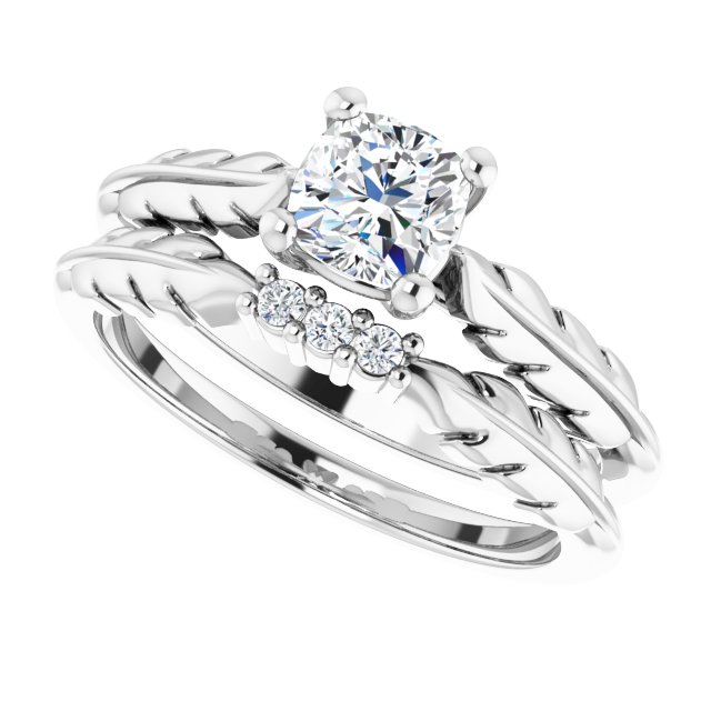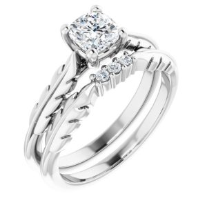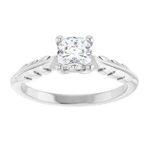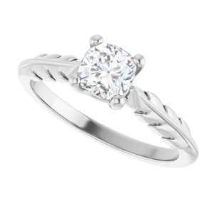 14K White Gold 5 mm Cushion Solitaire Engagement Ring Mounting