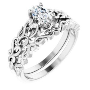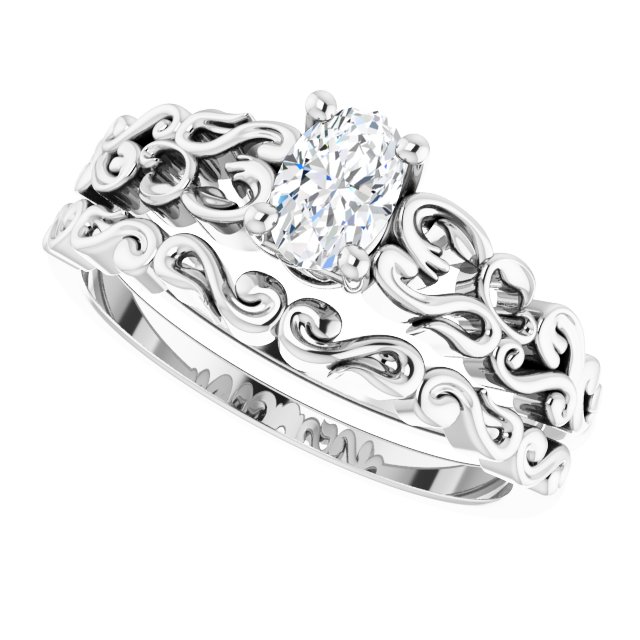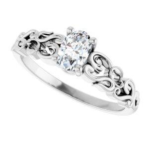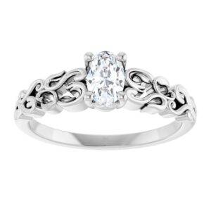 14K White Gold 6 x 4 mm Oval Vintage-Inspired Solitaire Engagement Ring Mounting