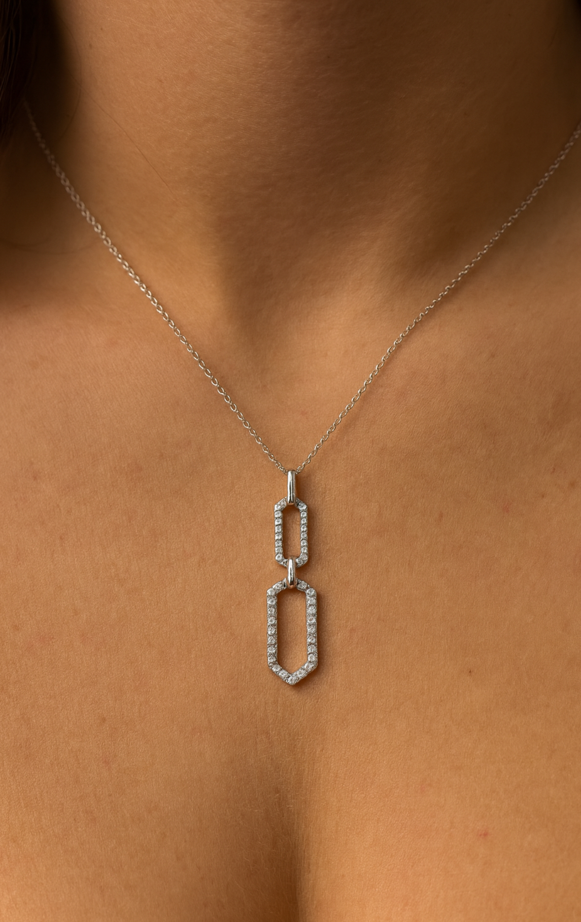 18″ Sterling Silver Necklace with Geometric Style Pendant featuring Cubic Zirconia
