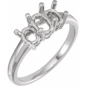 14K White Gold Three-Stone Engagement Ring Mounting