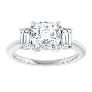 14K White Gold 7×7 mm Cushion Engagement Ring Mounting