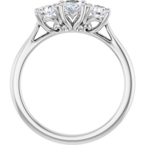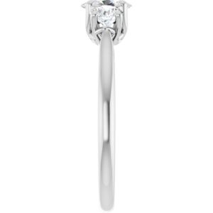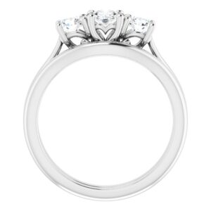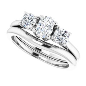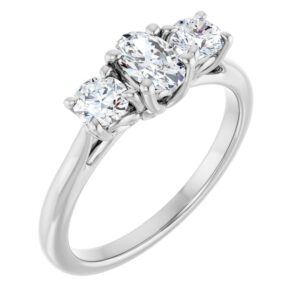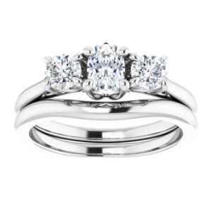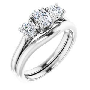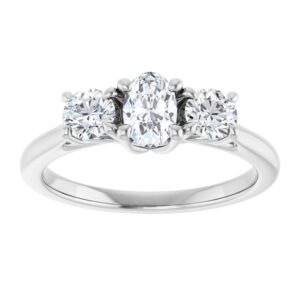 14K White Gold 6×4 mm Oval Three-Stone Engagement Ring Mounting