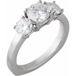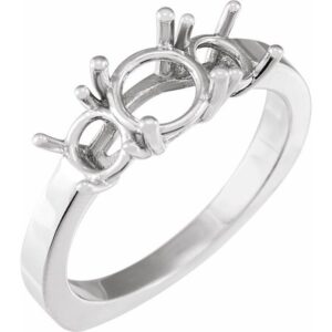 14K White Gold 5.2 mm Round Three-Stone Engagement Ring Mounting