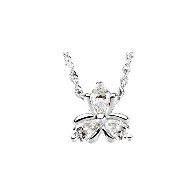14K White Gold 5×3 mm Pear Three-Stone Slide Pendant Mounting